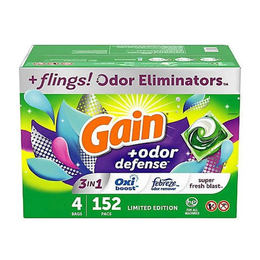 View full detailsGain Flings 3-in-1 Laundry Detergent Pacs with Odor Defense, 152 ct.